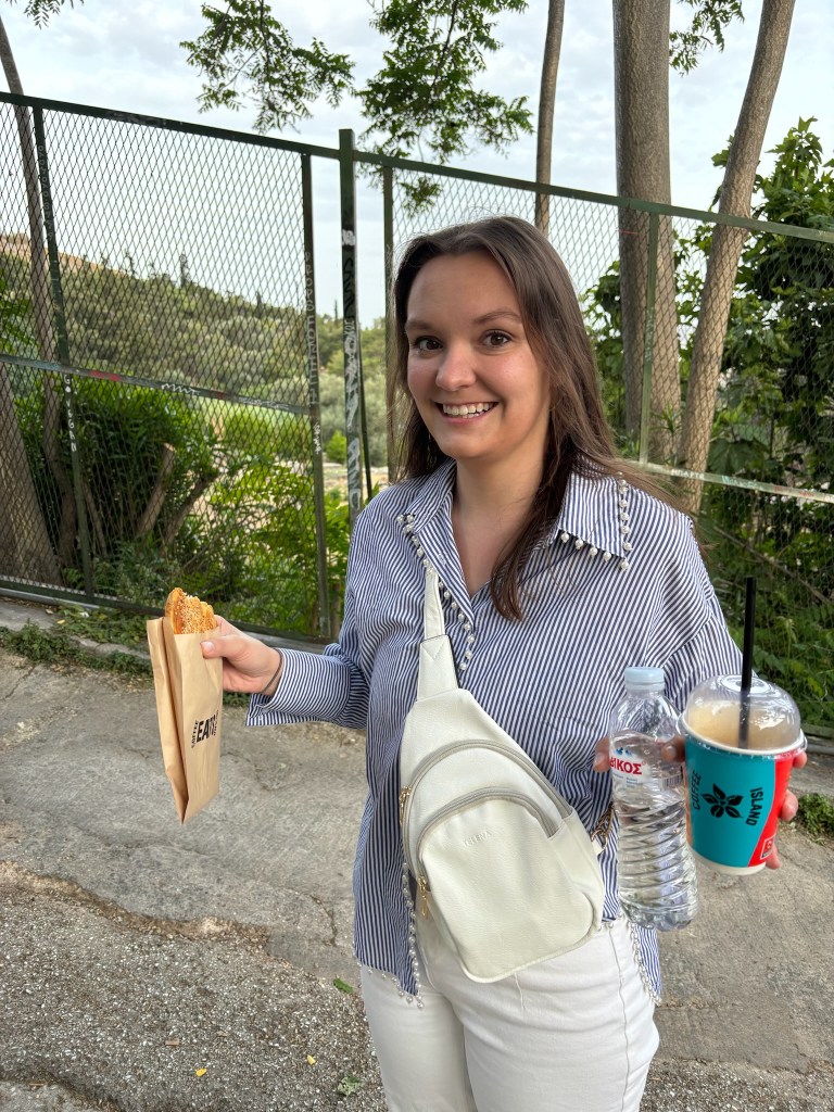 Grab a hand pie on the way there (trust me they are delicious)! If you are overwhelmed when you first get in and just really need a coffee and a snack then look for the closest Gregory’s which is the Greek version of a fast casual breakfast/coffee chain but like way better than Starbucks (shade intended lol). We ended up getting coffee from them like 3 or 4 times throughout our 2+ weeks throughout all of Greece and it’s an easy backup to keep in your pocket!
