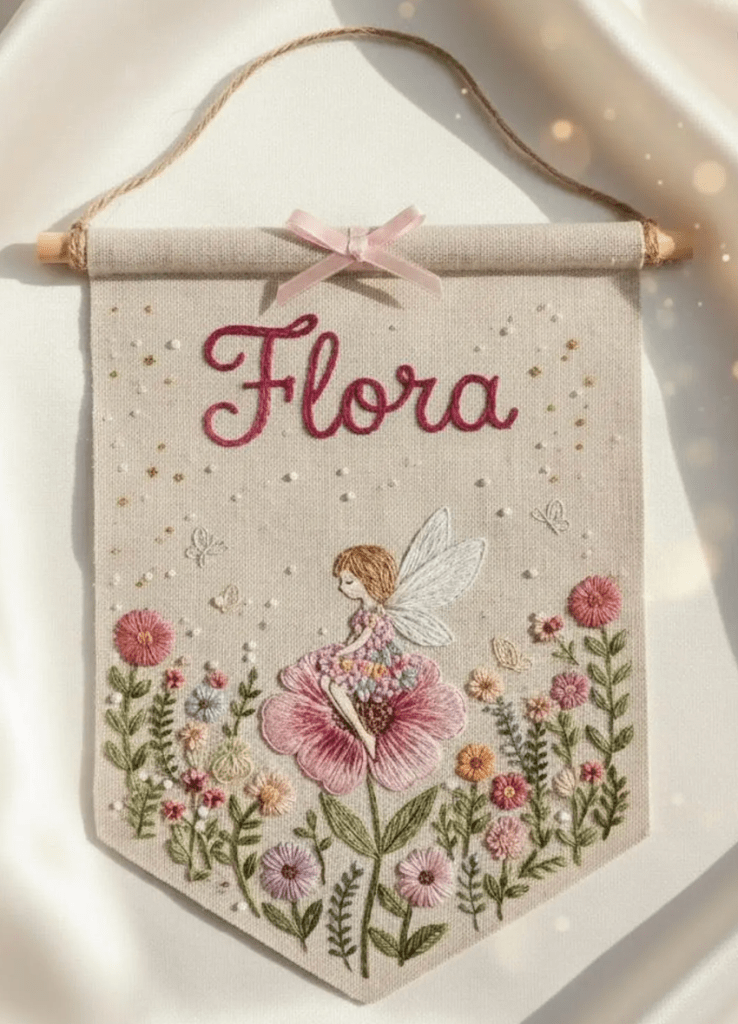 Personalized nursery decor find: Personalized Hand Embroidered Linen Nursery Wall Flag