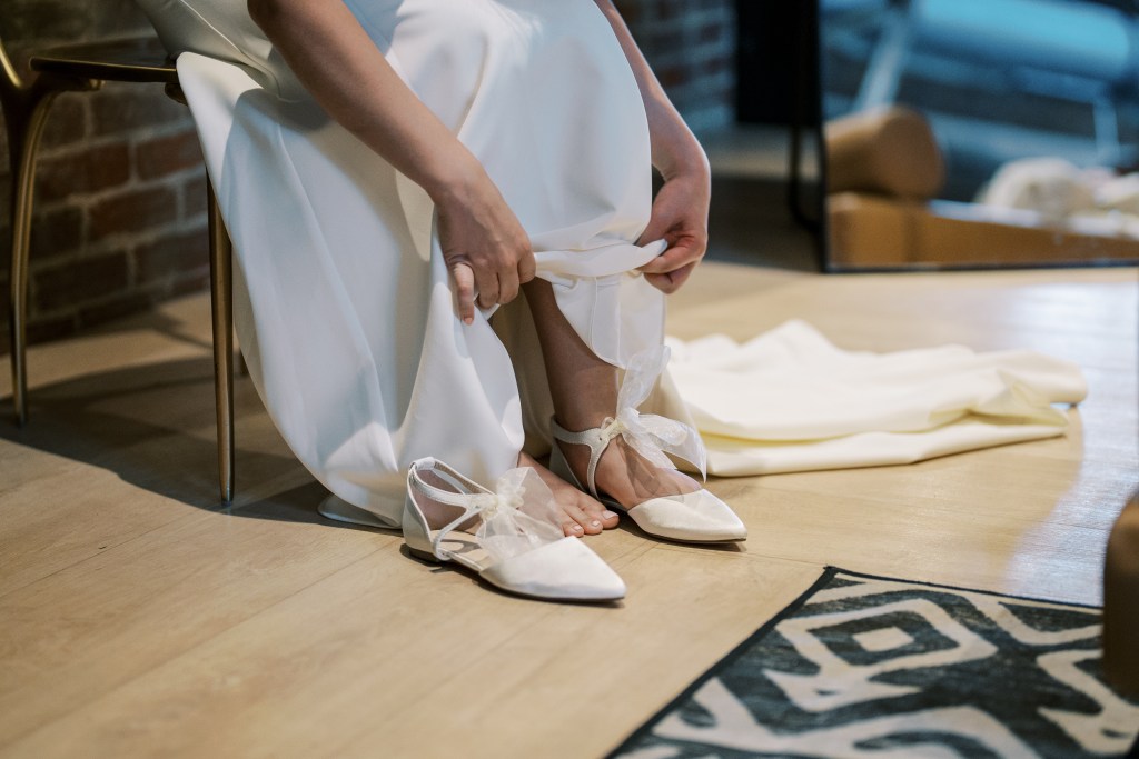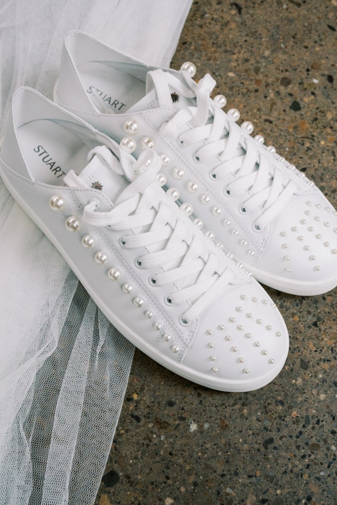 Pearl sneakers for bride: Stuart Weitzman (exact pair sold out but Poshmark has a bunch still!)