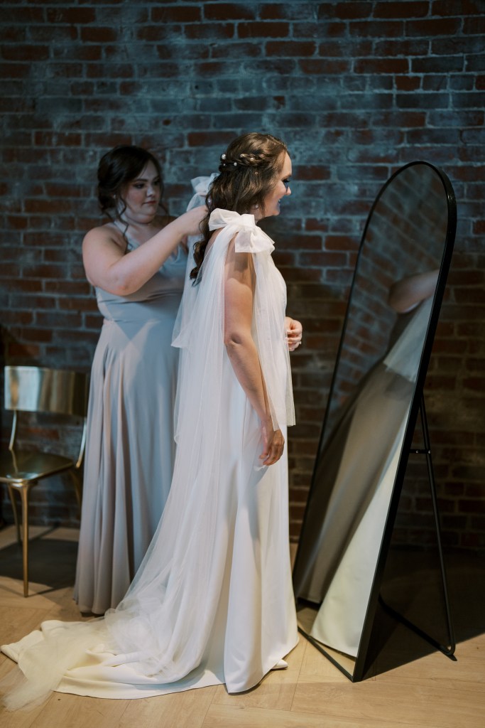 Getting ready time at an industrial wedding venue: